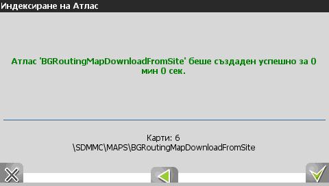 8. На следващият екран ще се появи съобщение за резултата от отварянето на атласа. Ако съобщението гласи, че неможе да се създаде атлас, е необходимо да се консултирате с продавача или да се обърнете към BGRoutingMap Team за повече информация – www.bgroutingmap.com