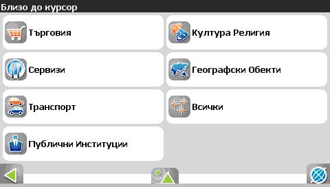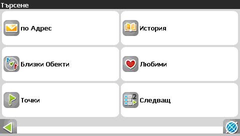 2. Търсене на интересни точки и обекти (POI). 2.1 от главното меню, избирате долния ляв бутон ТЪРСЕНЕ.