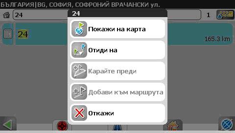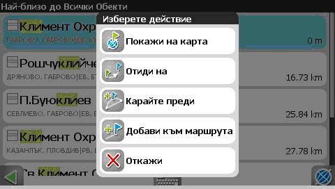 2.5 След това програмата ще покаже намерените резултати и ще се появи прозорец с избор дали да видите на картата обекта или програмата да изчисли маршрут до обекта: