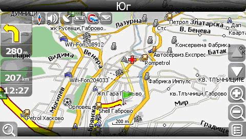 1.6 Ако от предното меню сте избрали ОТИДИ НА, то програмата автоматично ще изчисли маршрут до избраната крайна цел. Изчисляването на маршрута може да отнеме от половин секунда до 1 минута. След като приключи, на екрана ще се появи карта с показани инструкции за движеине: